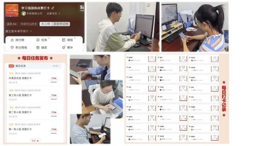 為鞏固學習成果,公司進行了學習強國線下挑戰(zhàn)賽。由三個黨小組及共青團員組中打卡學習總分前三的12位同志參加比賽。比賽開始,參賽選手用手機登錄“學習強國”APP進入江蘇學習平臺首頁答題入口進行限時作答,最終根據(jù)答題分值和用時決出3名學習強國“學習之星”。