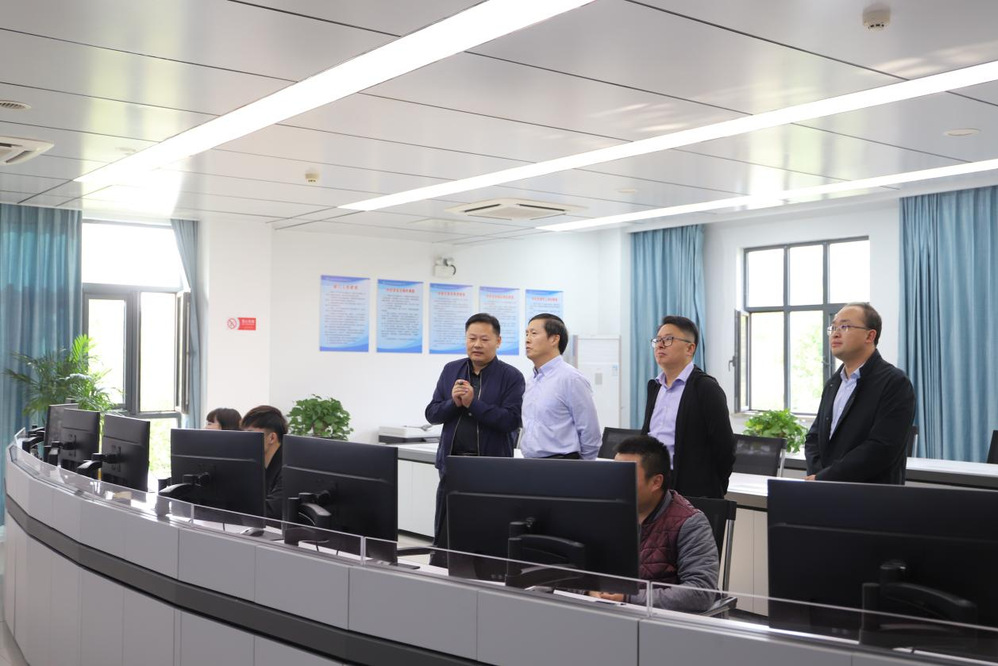 沈家寬一行首先參觀了潔源環(huán)境公司綜合環(huán)保展廳,聽取了市區(qū)污水處理廠建設(shè)和運行情況的匯報,并現(xiàn)場參觀了湯汪污水處理廠中央控制室,調(diào)研組一行對湯汪污水處理廠的穩(wěn)定優(yōu)質(zhì)運行表示了肯定。