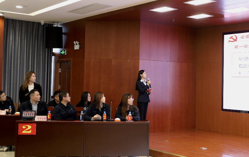 競賽知識以黨史、文史和新中國史為主要內(nèi)容,設(shè)置了必答、搶答、風(fēng)險(xiǎn)和觀眾互動(dòng)等多種題型。來自公司四個(gè)黨支部的參賽隊(duì)員精神飽滿、沉著應(yīng)答,在競賽過程中賽知識、比手速、拼腦力,展現(xiàn)出扎實(shí)的理論學(xué)習(xí)功底和豐富的知識儲備,大家踴躍競答、你追我趕,比分交替上升,搶答扣人心弦,整場競賽高潮迭起,引得現(xiàn)場觀眾掌聲連連。