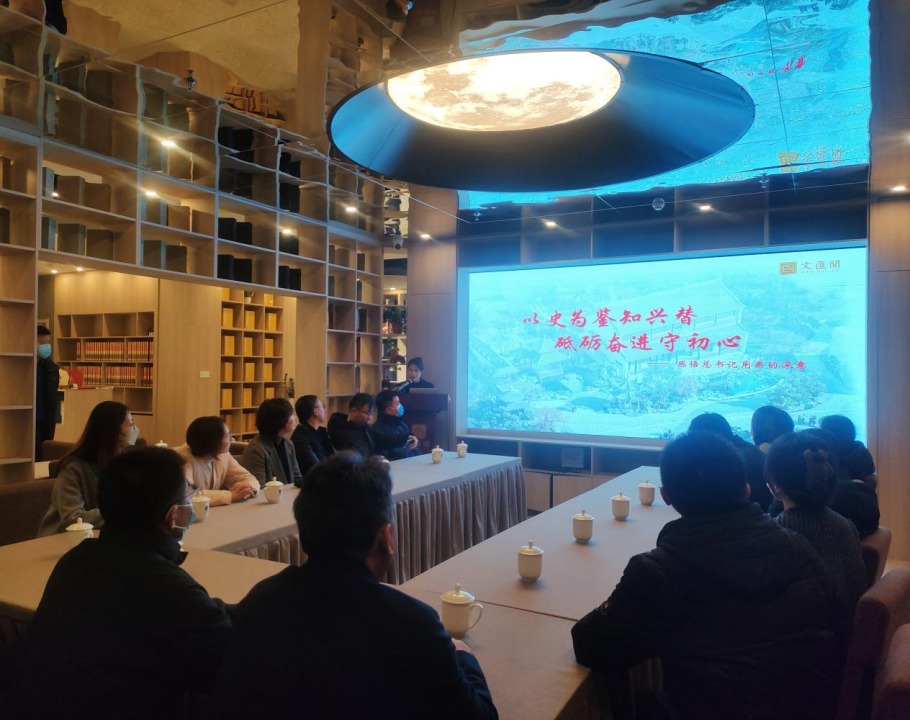 在講解員的帶領(lǐng)下,大家參觀了一樓歷史文化展陳區(qū),通過“依靠學(xué)習(xí),走向未來”主題學(xué)習(xí)平臺,學(xué)習(xí)了“信念篇”“勸學(xué)篇”“修身篇”“齊家篇”“民本篇”“勤廉篇”六個篇章的相關(guān)內(nèi)容,學(xué)習(xí)感悟習(xí)近平總書記在系列重要講話中所引用的《四庫全書》中的經(jīng)典語句,深刻領(lǐng)悟習(xí)近平總書記關(guān)于黨風(fēng)廉政建設(shè)和反腐敗斗爭的重要論述。隨后,文匯閣青年黨員以《以史為鑒知興替 砥礪奮進(jìn)守初心》為題為大家上了一堂生動的專題黨課。