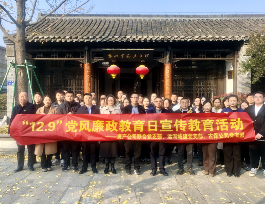 12月6日,資產(chǎn)公司聯(lián)合黨支部、運(yùn)河城建公司黨支部和古保公司黨支部聯(lián)合組織公司黨員、入黨積極分子前往揚(yáng)州阮家祠堂開(kāi)展“12·9”黨風(fēng)廉政教育日活動(dòng)。