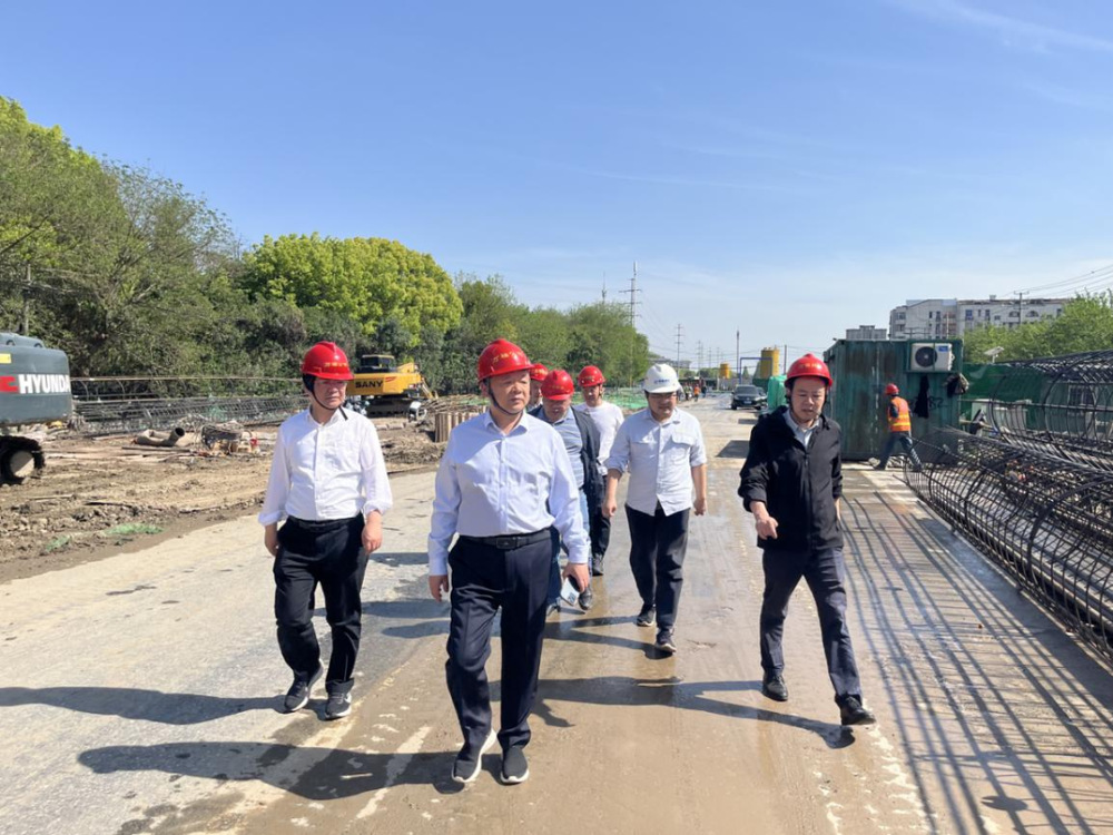 在潤揚(yáng)南路快速化改造工程施工現(xiàn)場,季紅軍詳細(xì)了解樁基施工、河道治理、頂升工程等實(shí)施情況,并對(duì)下一步重點(diǎn)工作提出具體要求。