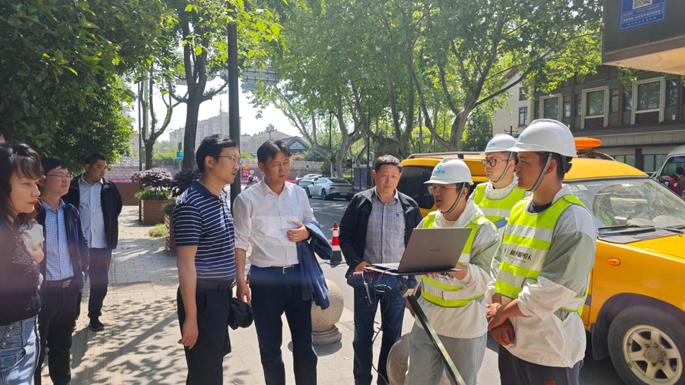 4月25日上午,江蘇省城市生命線安全工程建設(shè)推進(jìn)工作領(lǐng)導(dǎo)小組領(lǐng)導(dǎo)在鹽阜路雷達(dá)空洞探測(cè)現(xiàn)場(chǎng),實(shí)地調(diào)研揚(yáng)州市政管網(wǎng)公司雷達(dá)空洞探測(cè)工作開展情況,并給予技術(shù)指導(dǎo)。