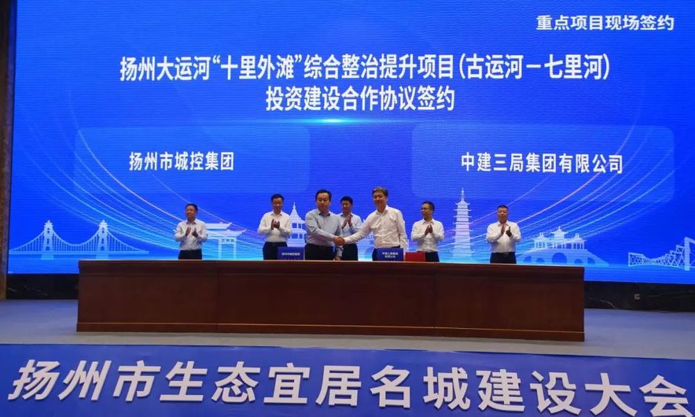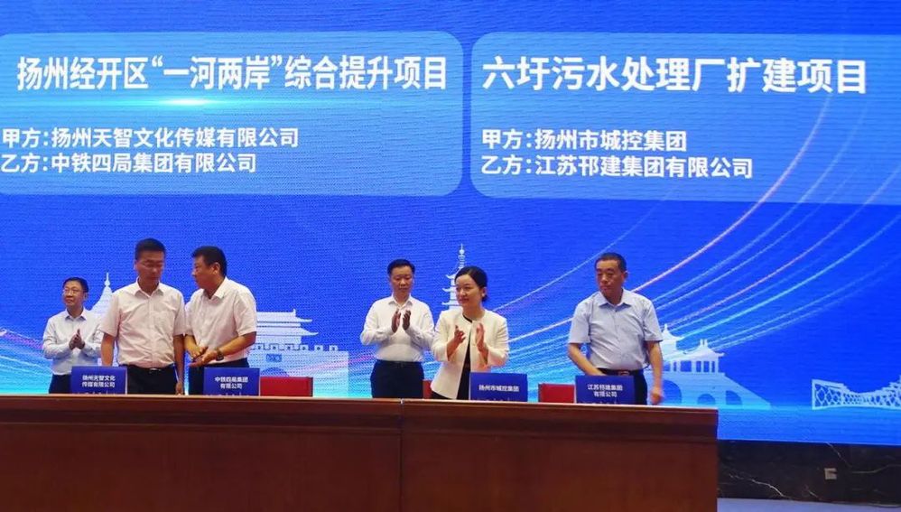 會上,11個項目舉行現(xiàn)場簽約。其中,城控集團與中建三局圍繞提升城市服務(wù)功能,簽訂《揚州大運河“十里外灘”綜合整治提升項目(古運河-七里河)投資建設(shè)合作協(xié)議》,與江蘇邗建集團圍繞基礎(chǔ)設(shè)施改善,簽訂六圩污水處理廠擴建項目。此次簽約,各方將本著優(yōu)勢互補、互惠互利、協(xié)同發(fā)展原則,共同推動揚州大運河文旅資源開發(fā)及城市基礎(chǔ)設(shè)施建設(shè),為揚州高質(zhì)量發(fā)展貢獻新的更大力量。