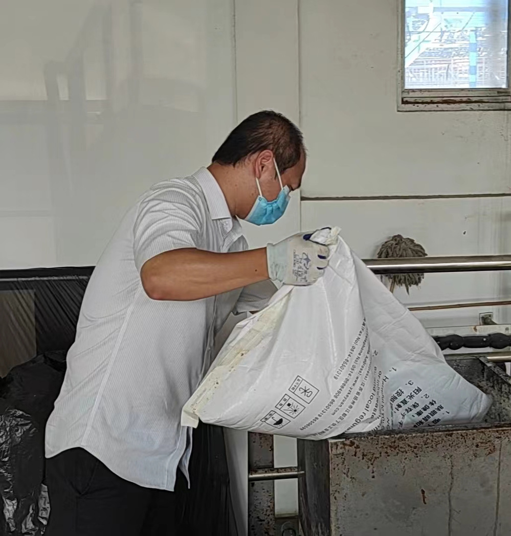 良好的生態(tài)環(huán)境是最普惠的民生福祉,在污水處理工藝中,脫泥泵房是污水處理流程中最為繁重的崗位之一,水中大部分固體污染物會(huì)隨著絮凝沉淀從水中分離后去除。在炎熱的夏季,高溫伴隨著脫水機(jī)器的轟鳴,散發(fā)著污泥特有的刺鼻氣味。周徽作為湯汪污水處理廠污泥脫水機(jī)房班長,多年來,長期帶領(lǐng)著脫泥機(jī)房班組成員在生產(chǎn)運(yùn)行一線崗位上勇挑重?fù)?dān),沖鋒在前,積極發(fā)揮先鋒模范作用,以實(shí)際行動(dòng)踐行污水處理職責(zé)。