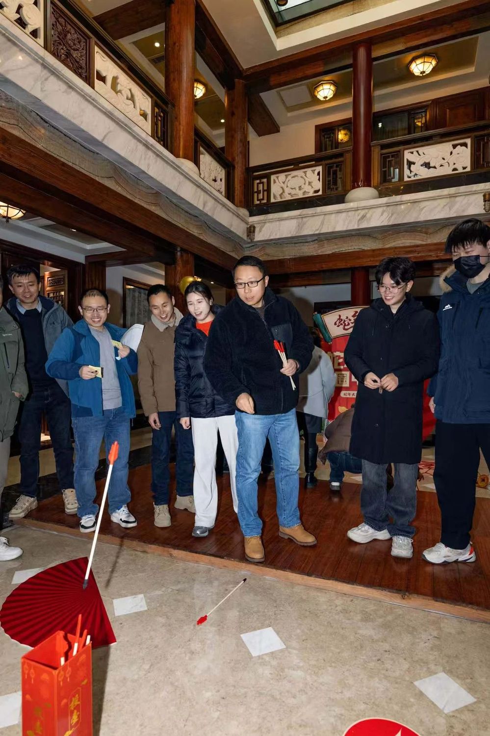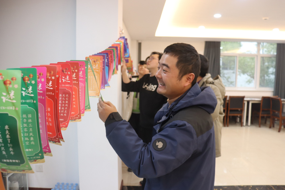 最先進行的是猜燈謎環(huán)節(jié),大家圍攏在燈謎前,或低頭沉思,或相互交流,爭相猜解燈謎。緊接著,套圈和投壺環(huán)節(jié)更是將活動推向了高潮,笑聲、歡呼聲此起彼伏,活動現(xiàn)場洋溢著濃厚的節(jié)日氣氛。