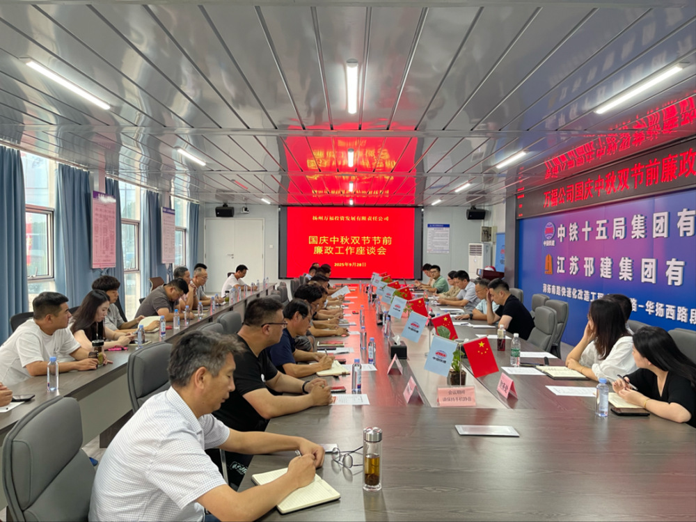 為深入貫徹中央八項規(guī)定精神,營造風(fēng)清氣正的節(jié)日氛圍,嚴(yán)防“八小時外”和“節(jié)日病”,9月28日下午,萬福公司黨支部在潤揚(yáng)路南延項目部開展節(jié)前廉政工作座談會。萬福公司領(lǐng)導(dǎo)班子成員、各部門負(fù)責(zé)人及現(xiàn)場工作人員;中鐵十五局、揚(yáng)建集團(tuán)、邗建集團(tuán)、太平洋西北建設(shè)集團(tuán)各項目書記、項目經(jīng)理和監(jiān)理單位工作人員參加會議。