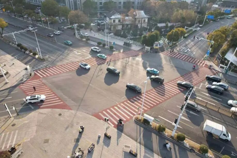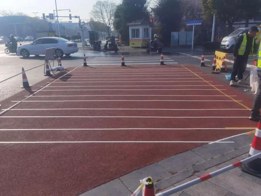 此次彩色路面與普通路面形成高對比視覺沖擊,通過視覺分區(qū),強(qiáng)化“行人優(yōu)先”的路權(quán)屬性,有效減少人車搶行沖突;表面的凹凸紋理使雨天的摩擦系數(shù)提升2-3倍,大幅降低濕滑路段交通事故發(fā)生率;采用環(huán)氧樹脂和陶瓷骨料復(fù)合材料,耐磨性強(qiáng)、抗老化性優(yōu),使用壽命遠(yuǎn)超傳統(tǒng)標(biāo)線,更具實用性與經(jīng)濟(jì)性,為揚州市民交通出行保駕護(hù)航。